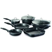 This baccarat granite 10 piece cookware set is suitable for all cook tops including induction and has a scratch resistant surface.